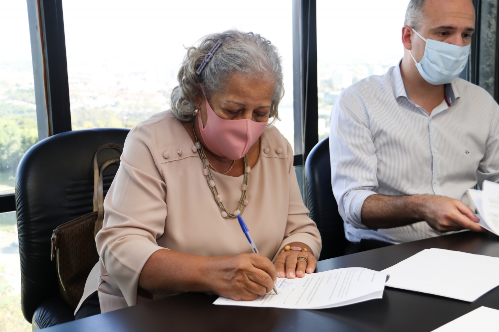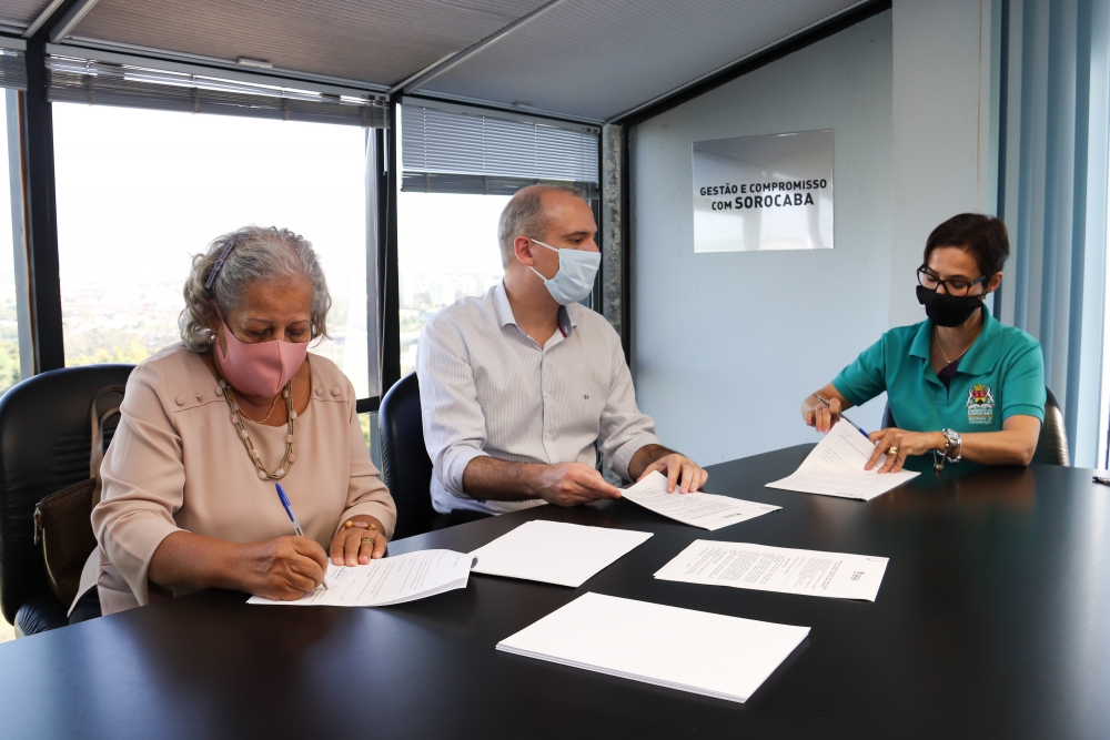 A prefeita Jaqueline Coutinho e a presidente do Movimento de Mulheres Negras de Sorocaba (Momunes), Mazé Lima, assinaram nesta quinta-feira (23) o convênio para a implantação de duas Repúblicas Jovens em Sorocaba. O programa permite o acolhimento de jovens saídos de instituições de cuidado com crianças e adolescentes e que completam a maioridade. Atualmente cabe ao Serviço de Acolhimento para Crianças e Adolescentes (Saica) receber esse público.
