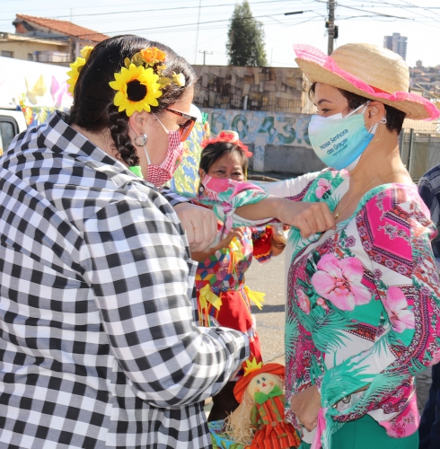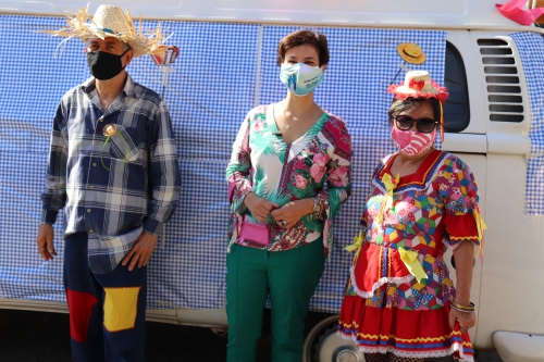 Enquanto, à distância, se confraternizavam com a equipe festeira, o casal percebeu a presença da prefeita Jaqueline Coutinho no local. Receptivos, contaram a ela um pouco de sua história e a chamaram para também dançar uma roda ‘julina’. Jaqueline foi avisada do evento pelo titular da Cidadania, Paulo Soranz, que a convidou a conhecer o projeto desenvolvido por sua funcionária. “Eu não poderia deixar de vir presenciar essa festinha. É uma delicadeza, uma atenção que não tem preço. Essas pessoas, muito mais do que os mais jovens, estão sofrendo com o isolamento social e pensar algo para os idosos é pensar na saúde deles, física e mental”, disse a prefeita.