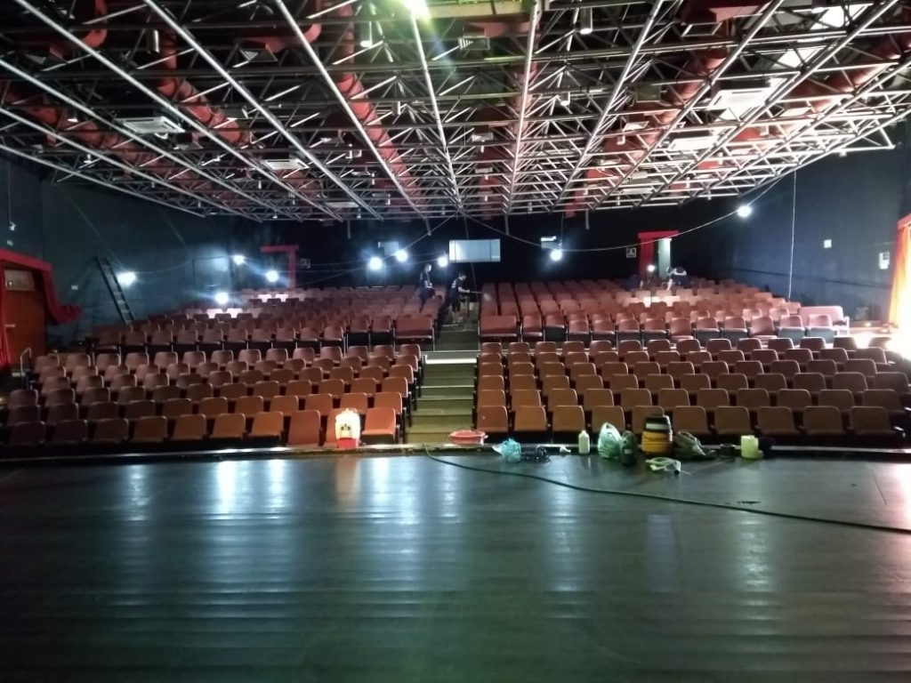Mesmo fechado temporariamente para manutenção e por conta da pandemia da Covid-19, o Teatro Municipal “Teotônio Vilela” (TMTV) continua sendo cuidado. O espaço teve suas poltronas e carpete higienizados nesta quinta-feira (16) como medida de prevenção ao coronavírus, pensando no bem-estar e na saúde do público que irá acompanhar os espetáculos futuramente e dos funcionários que trabalham no local. Ao todo, 410 poltronas e 610m² de carpete foram higienizados.