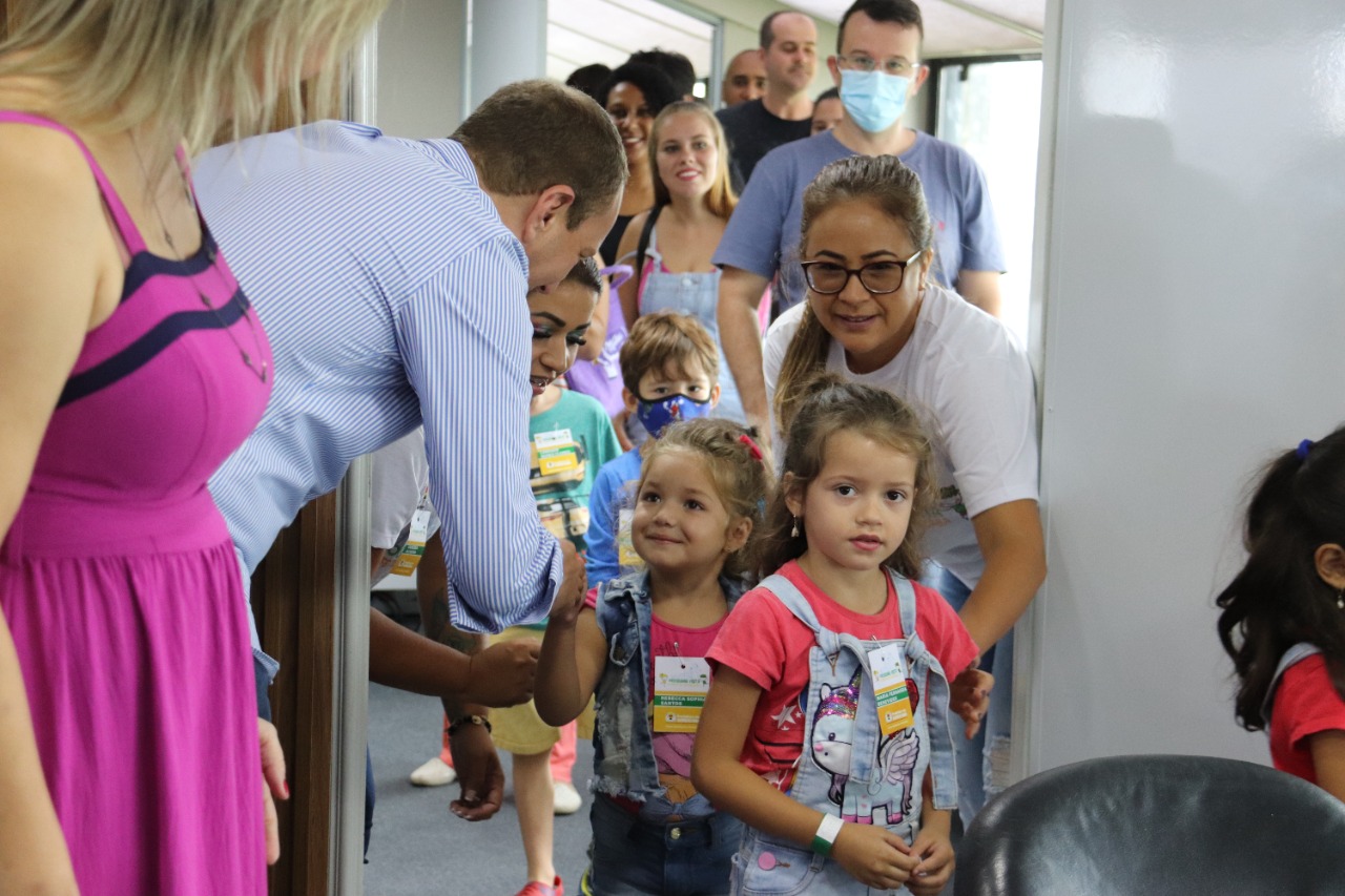 Acompanhadas dos pais ou responsáveis, elas puderam conhecer o prédio público, conversar com o prefeito Rodrigo Manga e a primeira-dama e presidente do Fundo Social de Solidariedade (FSS), Sirlange Frate Maganhato, e participar de diversas atrações.