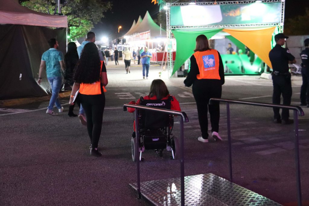 Com uma equipe especializada em Libras e voluntários, “Aqui tem inclusão” visa amenizar as dificuldades das pessoas com deficiência no recinto da festa, seja no percurso, na comunicação ou, até mesmo, com informações a respeito do direito de ter acesso às filas preferenciais e gratuidade no Parque de Diversões, por exemplo.