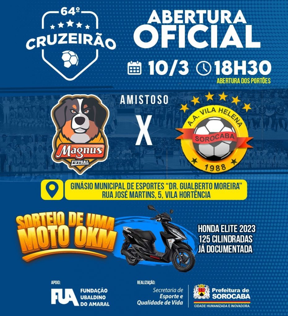 A programação do evento contará com uma partida amistosa entre as equipes do Magnus Futsal Sorocaba e do AA Vila Helena, apresentação de DJ, além do sorteio de uma moto Honda Elite 2023 125 cilindradas 0km já documentada e outras atrações especiais.