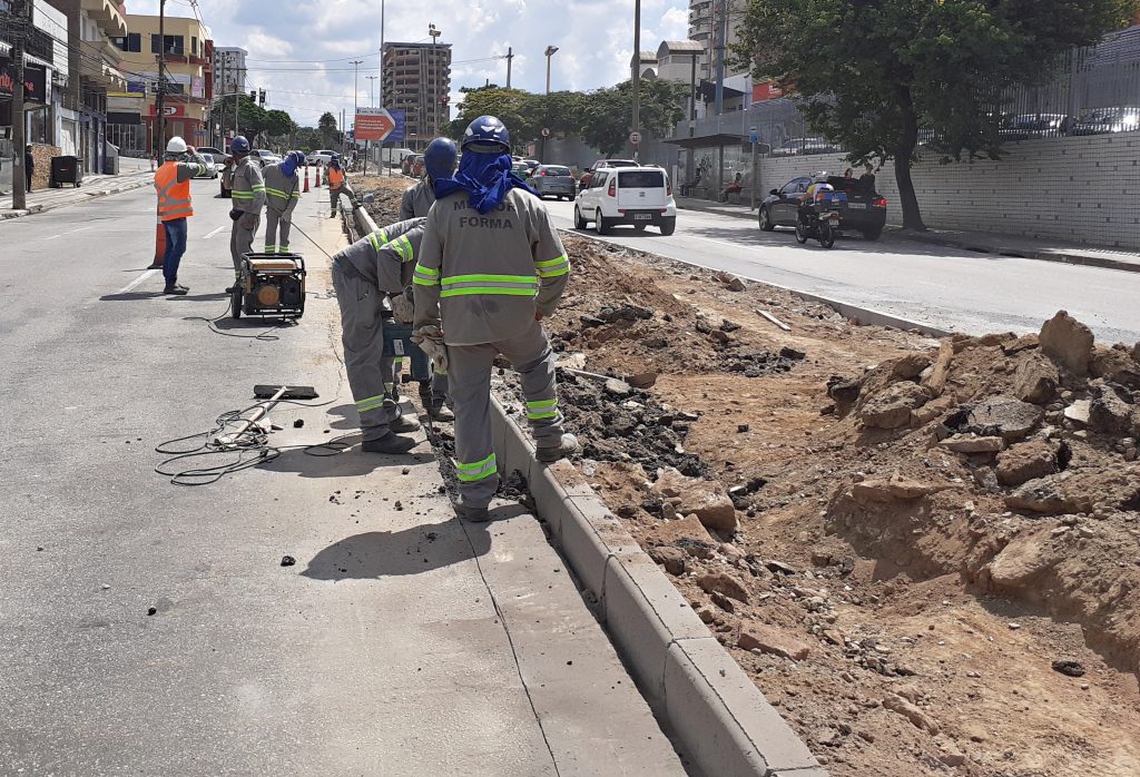 Nesse primeiro momento o trabalho está consistindo na implantação de novas guias e sarjetas e na etapa seguinte a terra atualmente existente será removida, sendo substituída por uma nova, apropriada para plantio.
