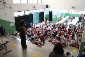 Durante a cerimônia de premiação, realizada na própria unidade de ensino, localizada no Jardim Botucatu, Zona Norte da cidade, a gestora ambiental Joyce Françoso e a analista de comunicação da Veolia, Ana Carolina Caminha, abordaram debates com os estudantes do 5º ano sobre economia circular, reciclagem e meio ambiente.