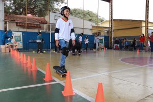 Nessa unidade escolar, por exemplo, os alunos estão tendo a chance de aprender a prática do skate com um professor de Educação Física, que é skatista desde os 14 anos de idade. “Fiz uma opção pelo esporte desde a minha adolescência, mas nunca pensei que chegaria a um dia poder trazer isso para a escola, como professor. Eu me sinto muito emocionado, porque passei por muita coisa para continuar com esse esporte. Minha mãe, dona Márcia, que está aqui hoje, é testemunha disso. E sua maior preocupação era com a segurança. Por isso, ela sempre insistia para eu usar capacete”, relembrou o professor Bruno Eli de Oliveira.
