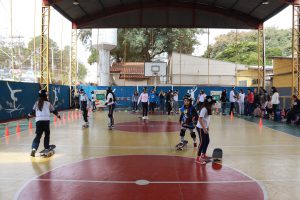Alunos da E.M. “Prof.ª Maria Domingas Tótora de Góes” tiveram uma aula diferente nesta quarta-feira (1). Eles foram para a quadra participar do projeto “Eu pratico Esporte Educacional Escolar”, que, entre outras atividades esportivas, oferece também a prática do skate, que é uma das 13 modalidades selecionadas pelas escolas e que tiveram início, neste ano, na rede municipal. A aula foi especial não somente pela modalidade escolhida, mas também pela participação dos pais e responsáveis nessa ocasião.