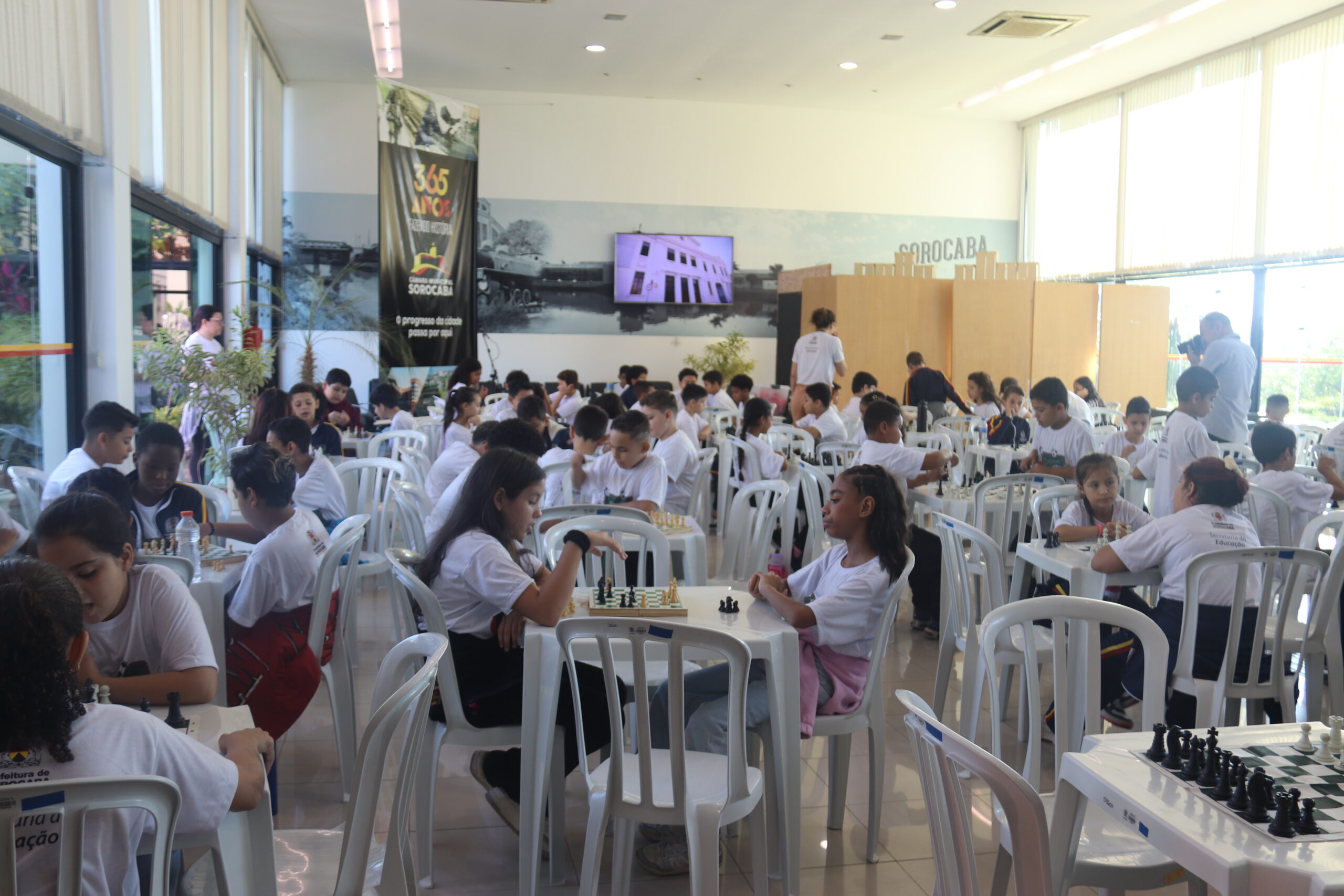 Foi um dia bem diferente para cerca de 120 estudantes, de quatro escolas da rede municipal de ensino, que integram o projeto “Eu Pratico Esporte Educacional Escolar”, da Secretaria da Educação (Sedu), na modalidade xadrez. Participaram alunos das escolas municipais “Prof.ª Ana Cecília Falcato Prado Fontes”, “Prof. Ary de Oliveira Seabra”, “Prof. José Carlos Florenzano” e “Prof. Edemir Antonio Digiampietri”. Todos foram convidados a participar de um evento de integração, jogando com colegas das outras escolas e, ao mesmo tempo, do projeto “Estudantes na Política”, que é promovido pela Câmara Municipal de Sorocaba.