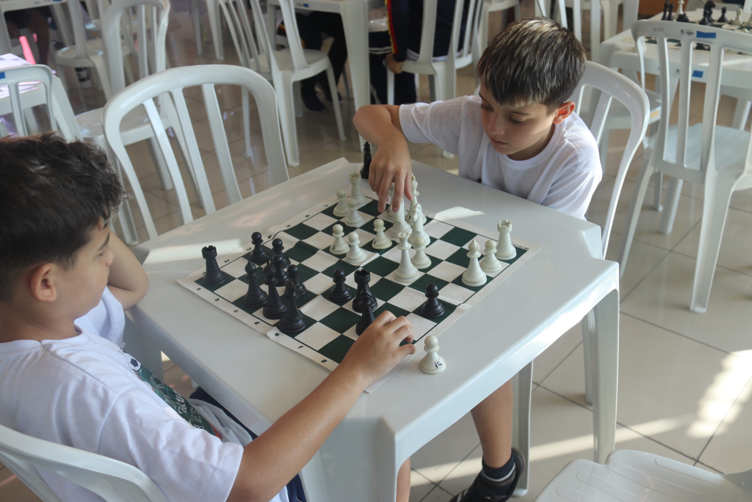 As aulas de xadrez tiveram início em março deste ano, quando os alunos passaram a ter contato com todas as regras, peças, seus movimentos e estratégias do jogo. Agora é a fase de aprofundamento desses conhecimentos. A oportunidade, portanto, é muito proveitosa, pois a interação com mais colegas permite ampliar o conhecimento e a troca de estratégias. “Eles observam como os outros jogam, como posicionam as peças e quais estratégias usam para vencer. É um momento de grande aprendizado, que nós, professores, também valorizamos muito”, ela acrescenta.