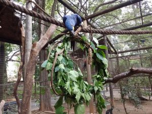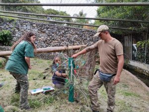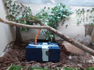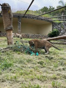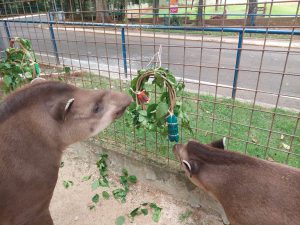 Enriquecimento ambiental nada mais é do que uma estratégia utilizada para estimular os comportamentos naturais dos animais. São itens adicionados aos recintos que despertam a curiosidade, a busca por alimentos, maiores períodos de atividade, estímulos aos órgãos do sentido, entre outros benefícios às espécies. Eles ocorrem de forma rotineira e contribuem para manter altos níveis de qualidade de vida aos animais.