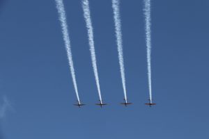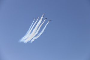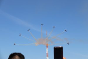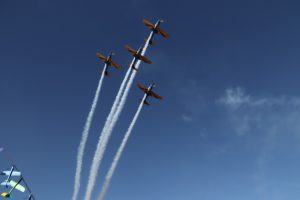 Por volta das 15h30, teve início a apresentação do Esquadrão de Demonstração Aérea (EDA) da Força Aérea Brasileira, a Esquadrilha da Fumaça, que tirou o fôlego dos visitantes, com manobras superradicais. A cada looping, parafuso ou cruzamento das aeronaves, o público ia ao delírio.