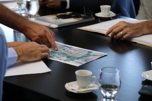Também participaram da reunião o vereador Vinícius Aith e os secretários Paulo Henrique Marcelo (Planejamento), Darwin José de Almeida Rosa (Serviços Públicos e Obras) e Luiz Henrique Galvão (Relações Institucionais e Metropolitanas).