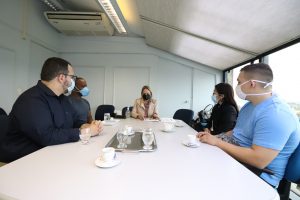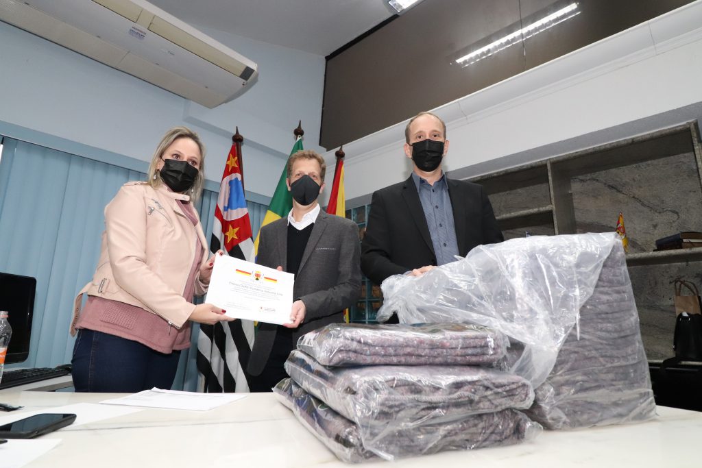 Ao lado do prefeito Rodrigo Manga, a primeira-dama e presidente do FSS recepcionou, ainda, o empresário Mauro Deutsch, presidente da empresa Delfim, que fez a entrega de 500 cobertores para a “Campanha de Inverno 2021”. A Delfim, fabricante de tecidos, é pioneira no país na produção de tecido com tecnologia antiviral, que inibe a proliferação do coronavírus, inclusive. “Estamos ajudando pontualmente, mas queremos muito poder contribuir com outras ações da Prefeitura futuramente, pois sabemos que todo bem que está sendo feito pela cidade reverte-se em benefício para todos nós”, afirmou o empresário.