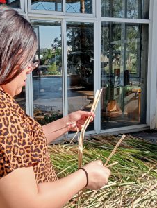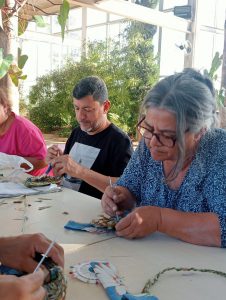Nas aulas, com atividades teóricas e práticas, os alunos estão aprendendo a confeccionar, artesanalmente, peças feitas com as folhas da taboa (Typha dominguensis) para uso utilitário e decorativo.