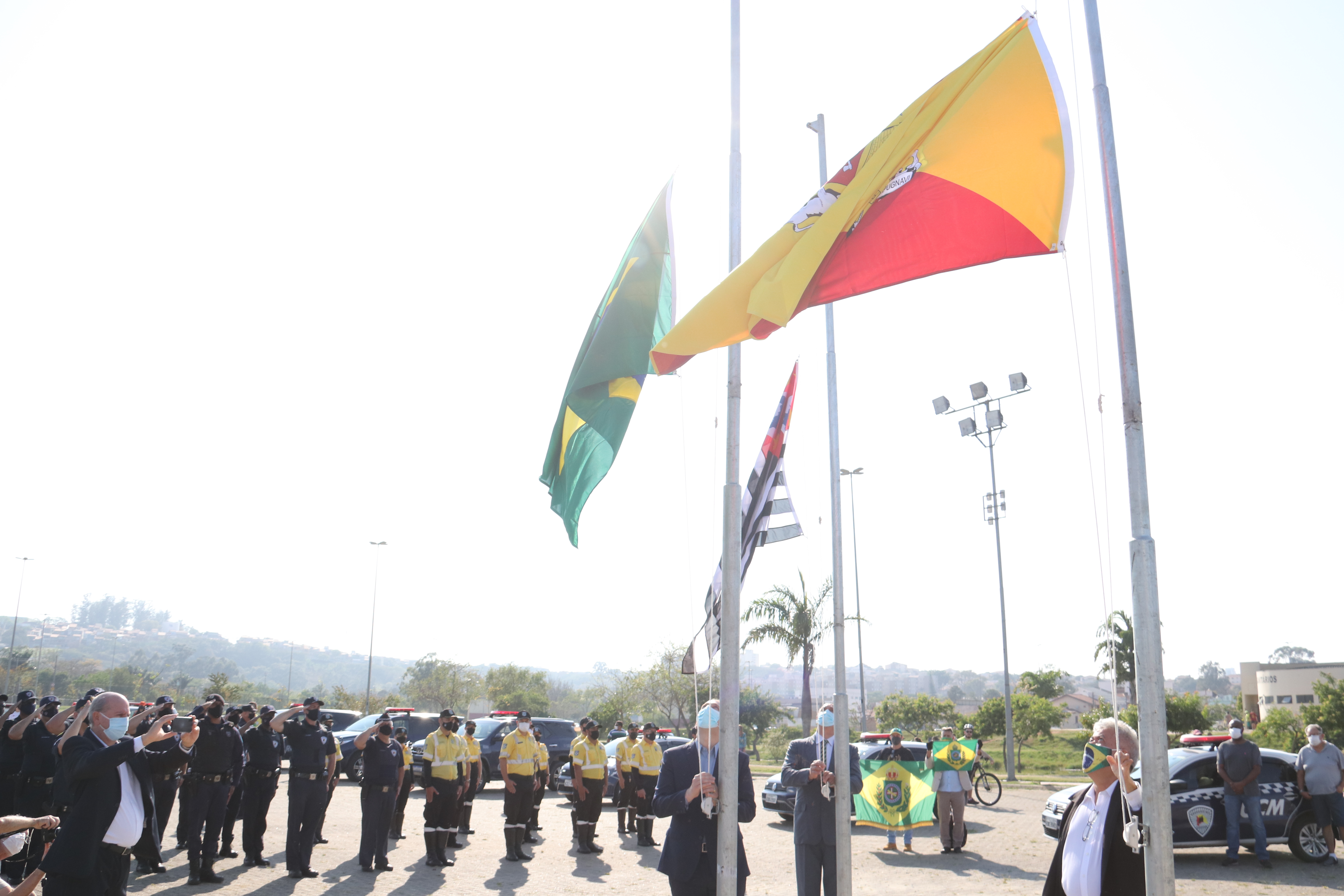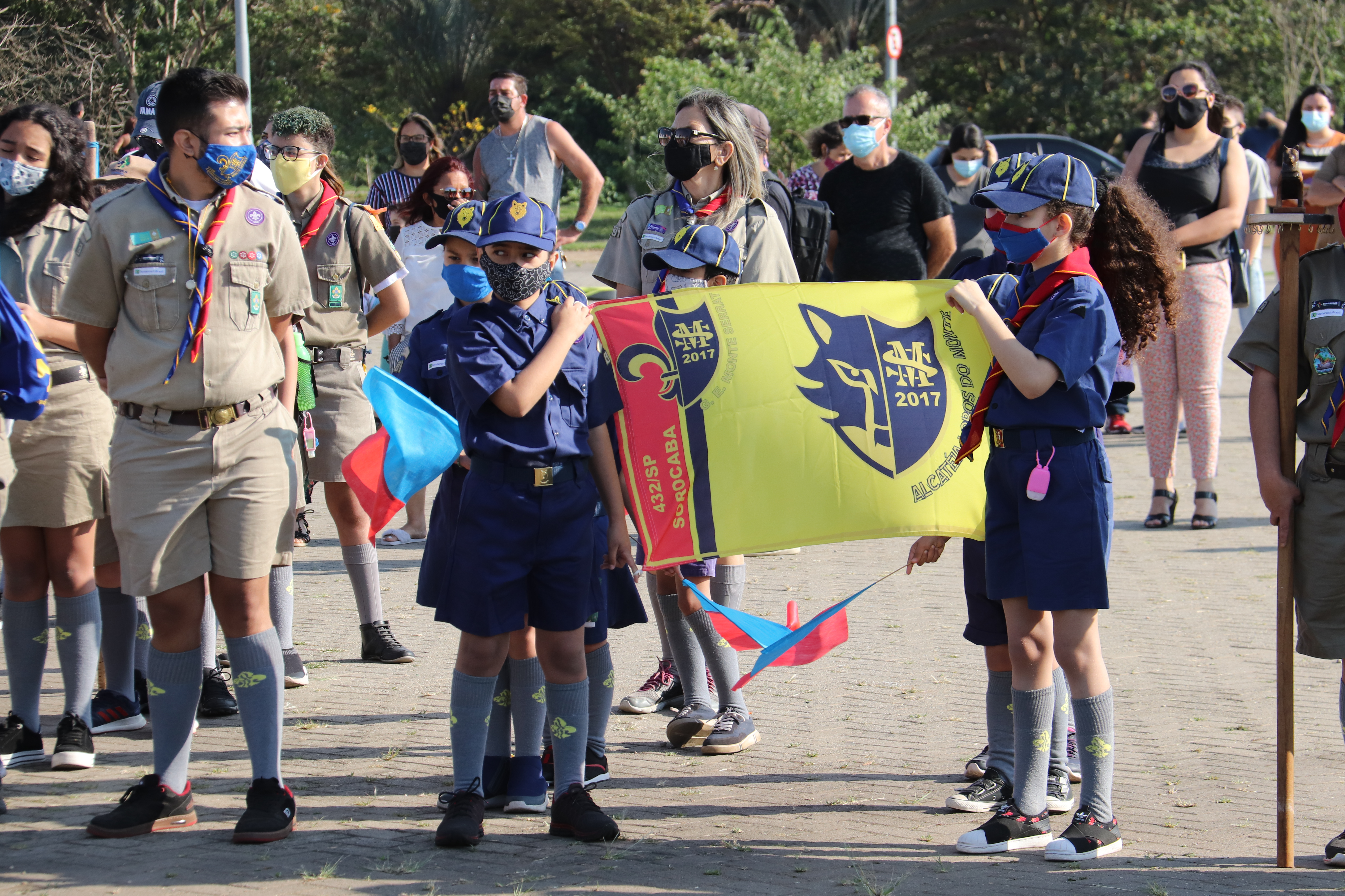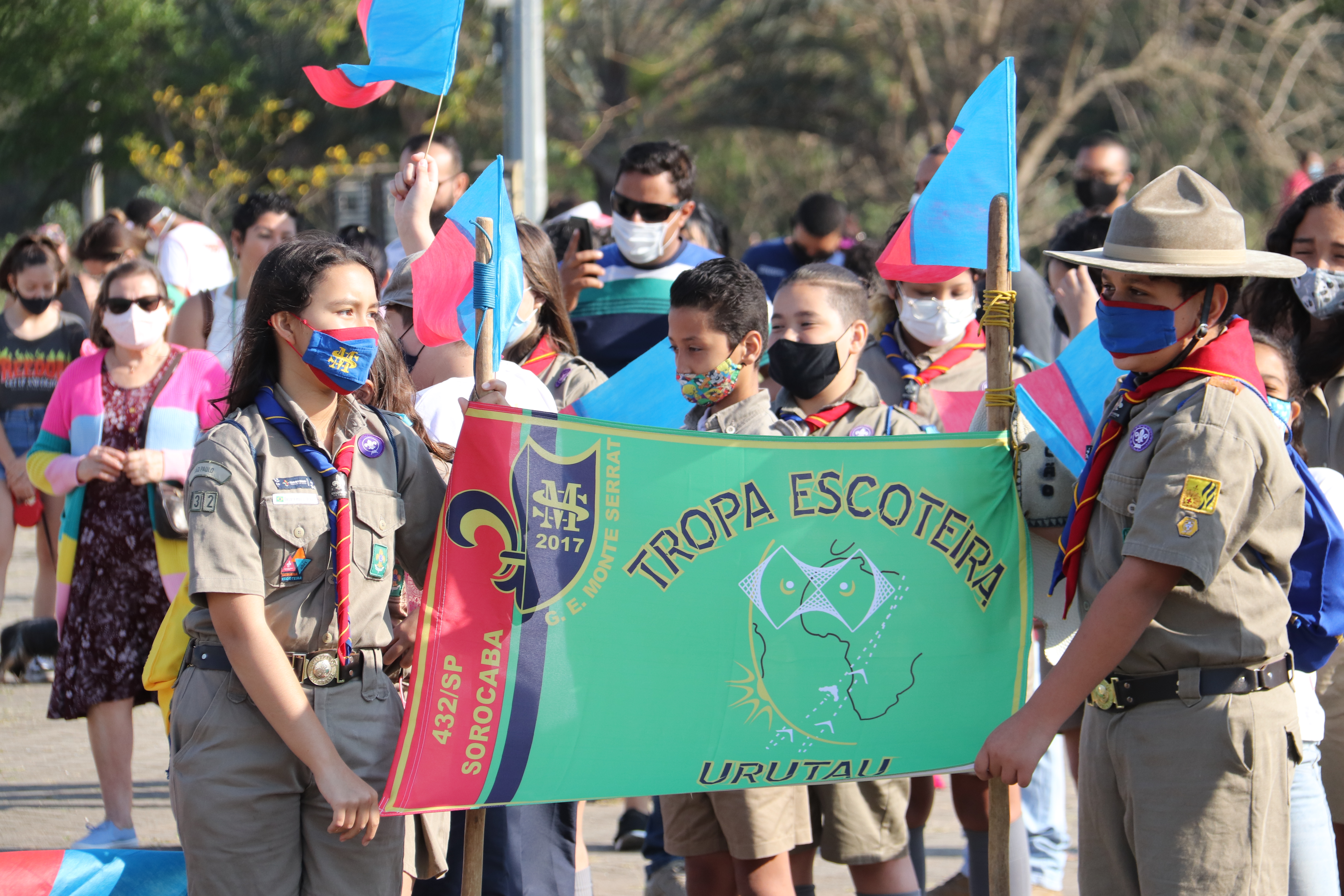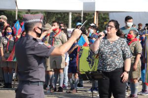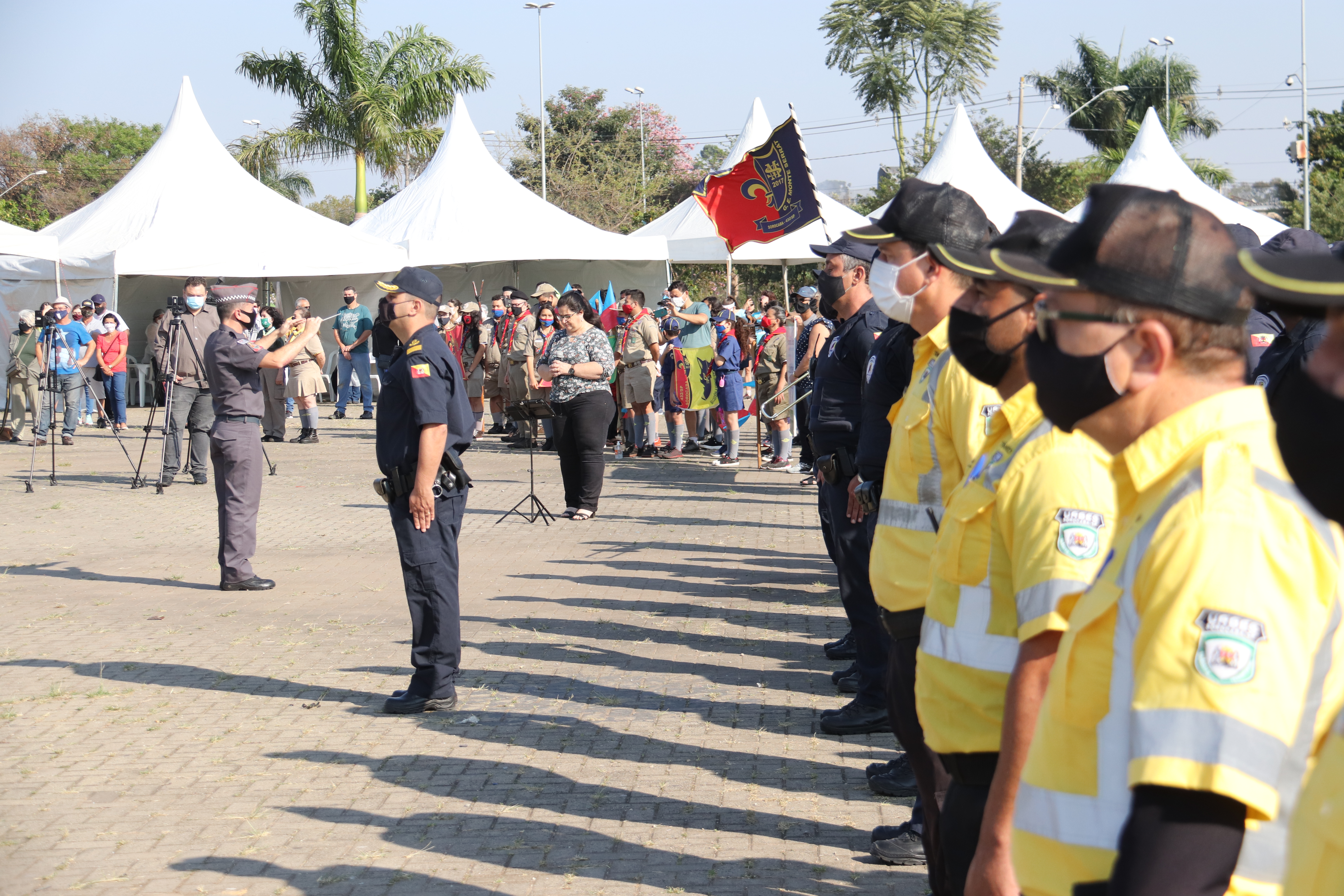 As equipes do Grupo Escoteiro Monte Serrat também estiveram presentes e formaram tropa ao lado dos GCMs e de agentes de trânsito da Urbes. Após o hasteamento das bandeiras, ao som da Banda Regimental de Música do CPI-7 e da interpretação da cantora sorocabana Teresa Baddini, o público acompanhou o Hino Nacional, o da Independência e o de Sorocaba. E, ainda, ouviu atento a declamação de poema autoral em alusão ao Dia da Independência, pela jovem poetisa Ana Cristina Rodrigues.