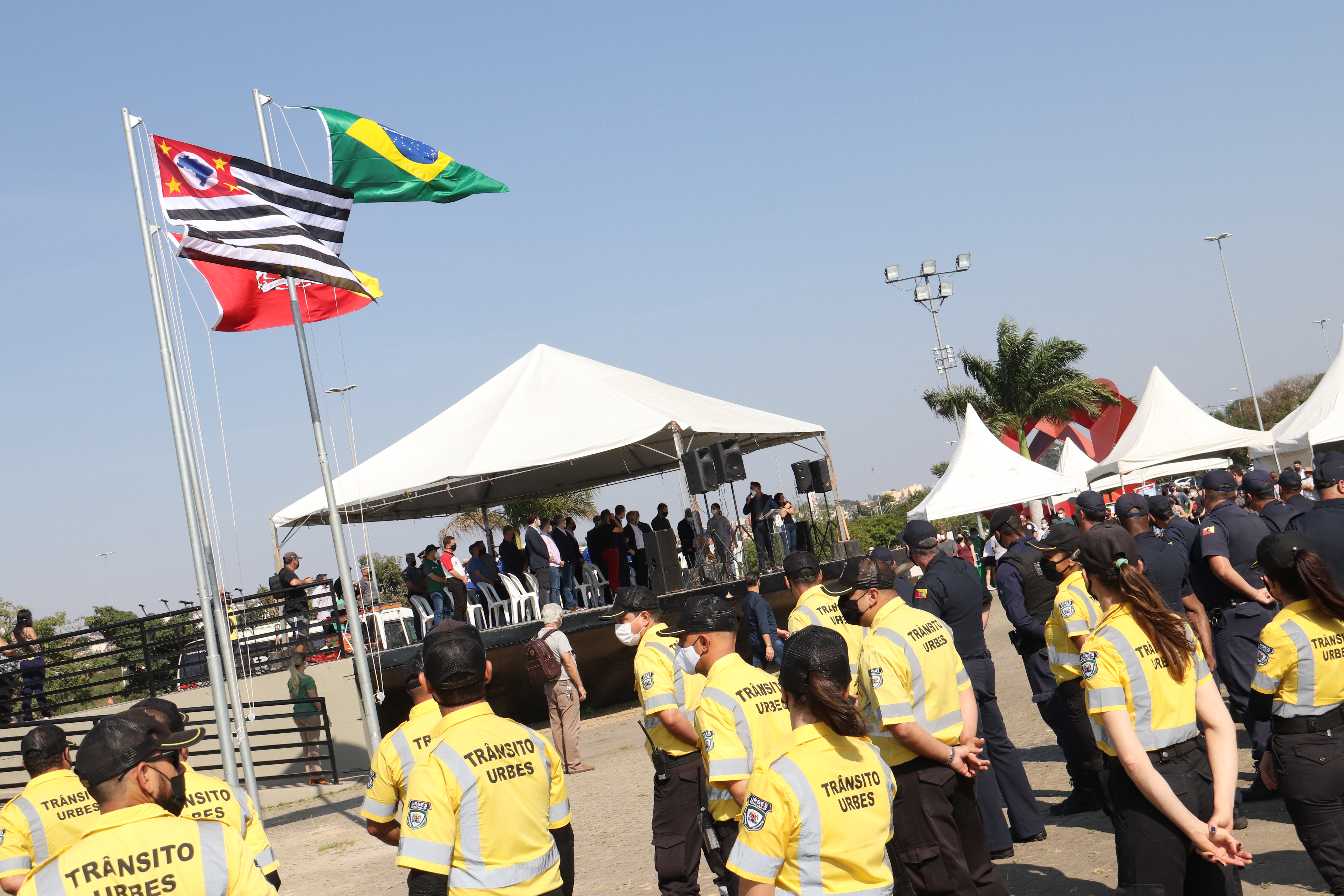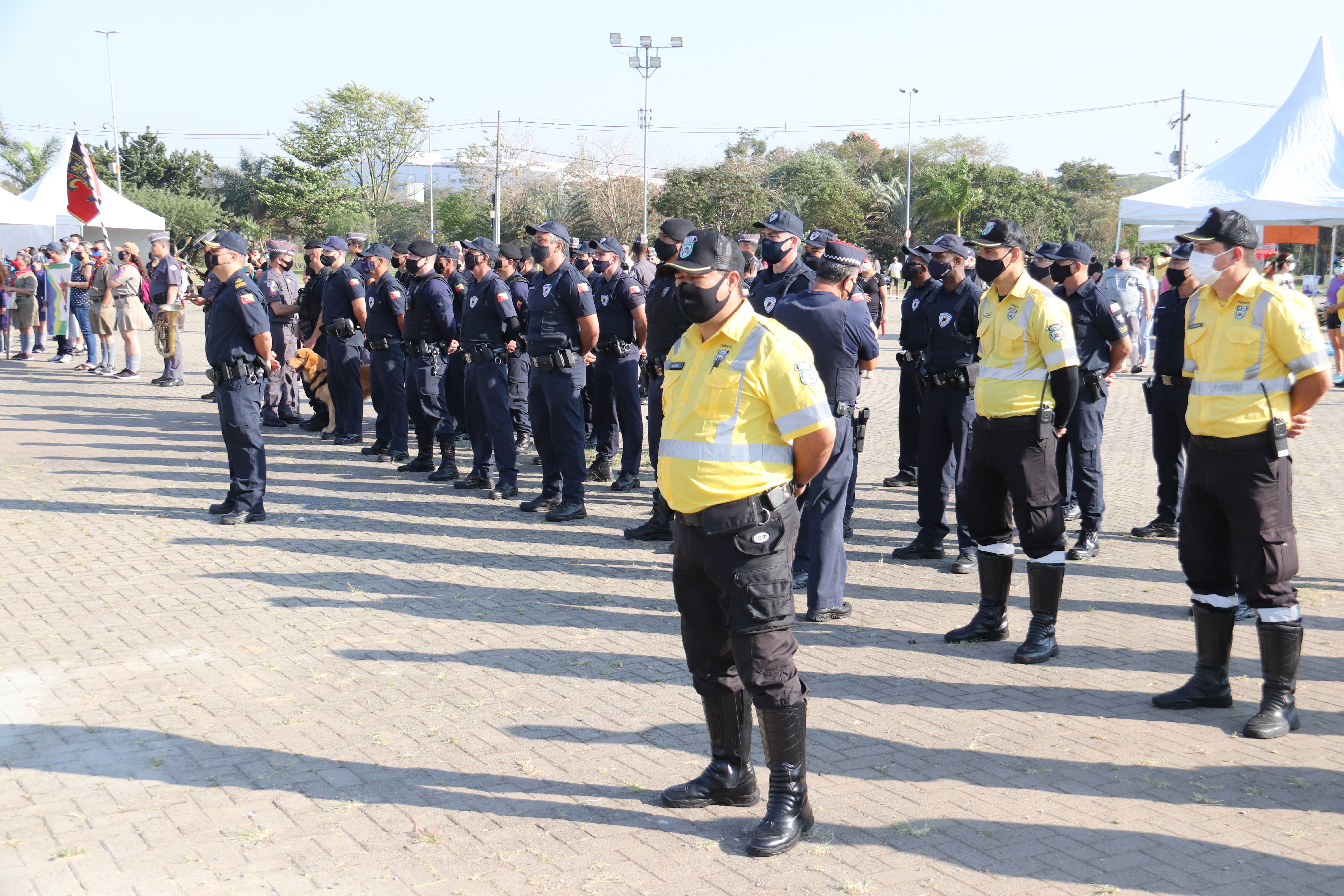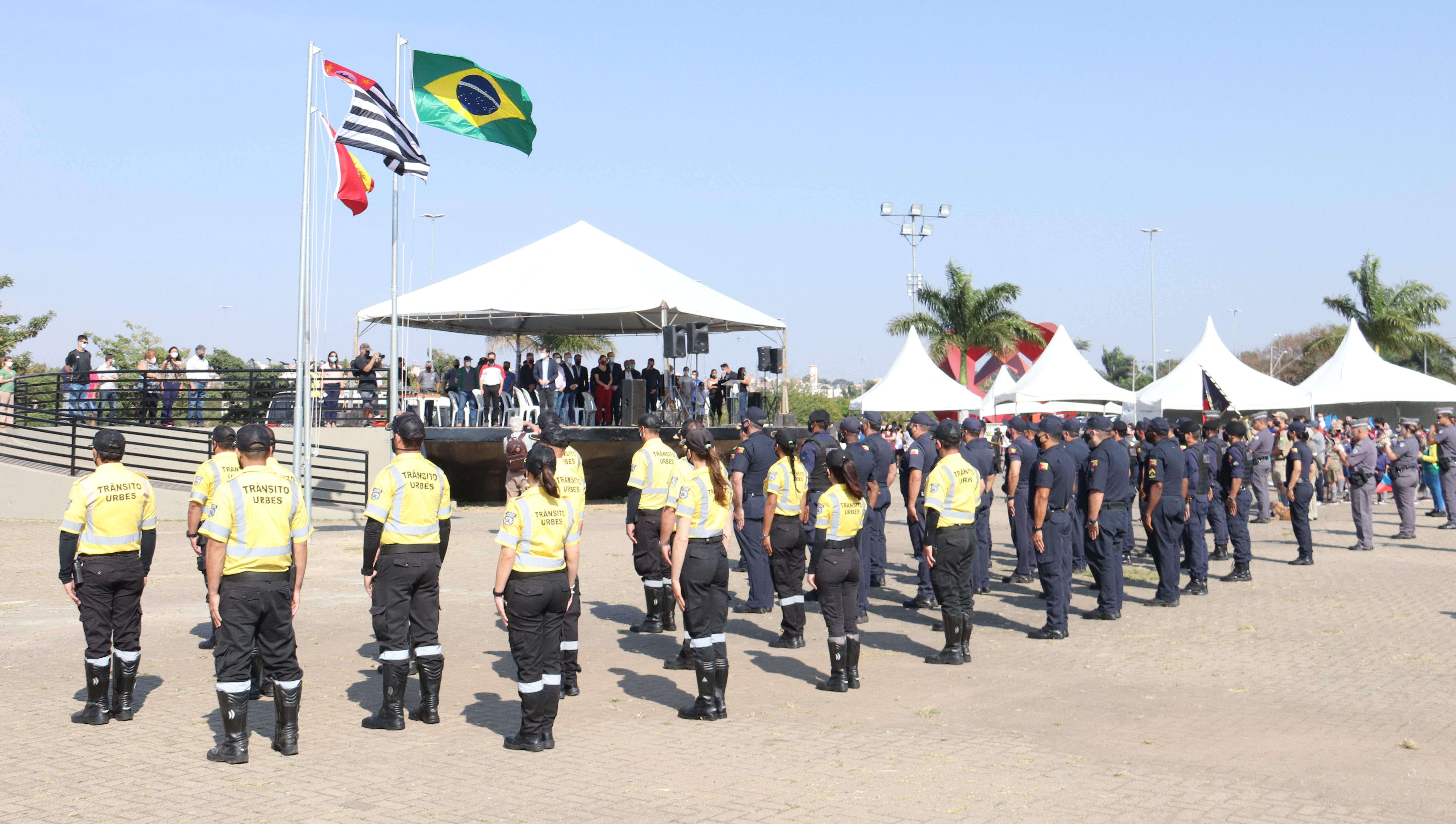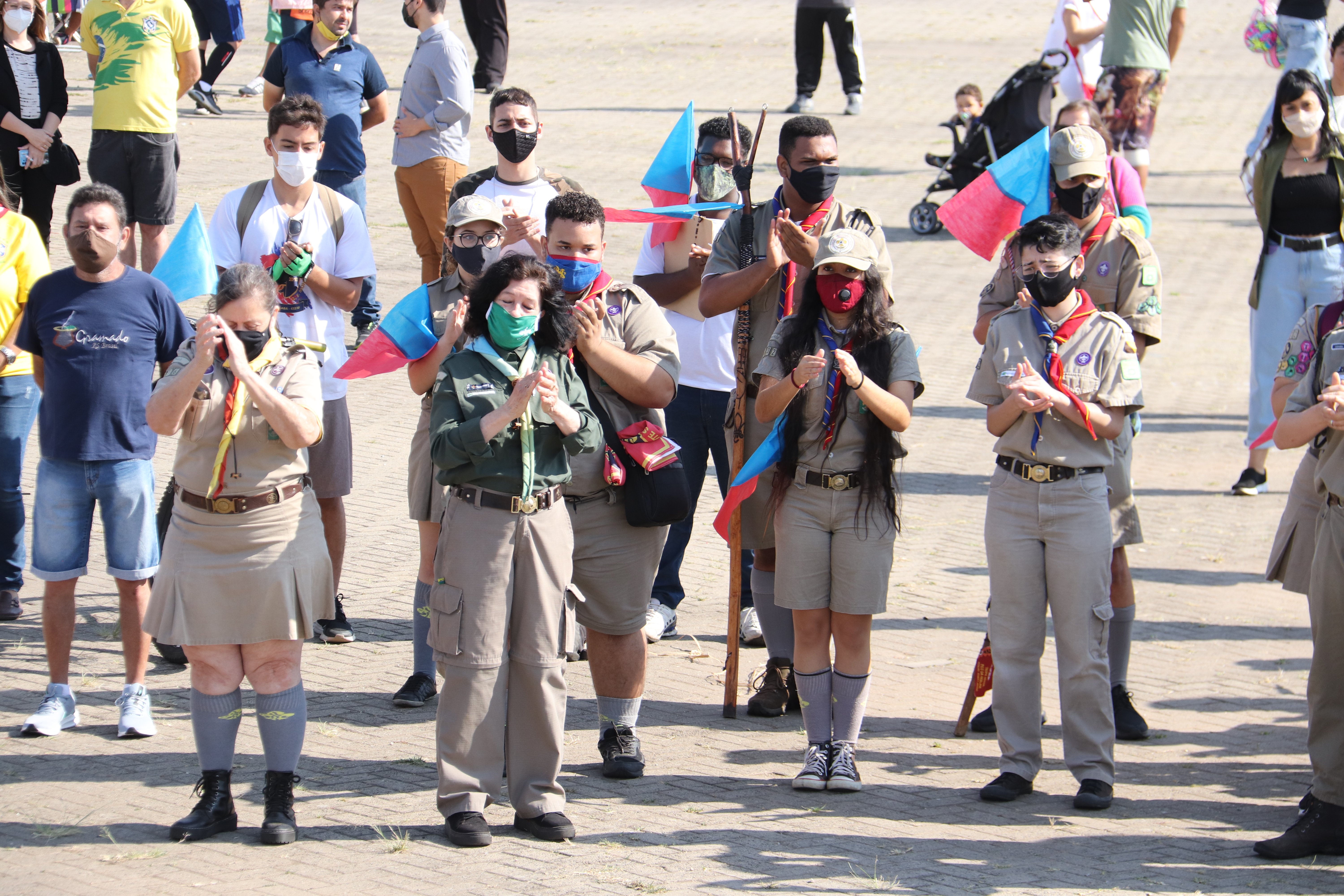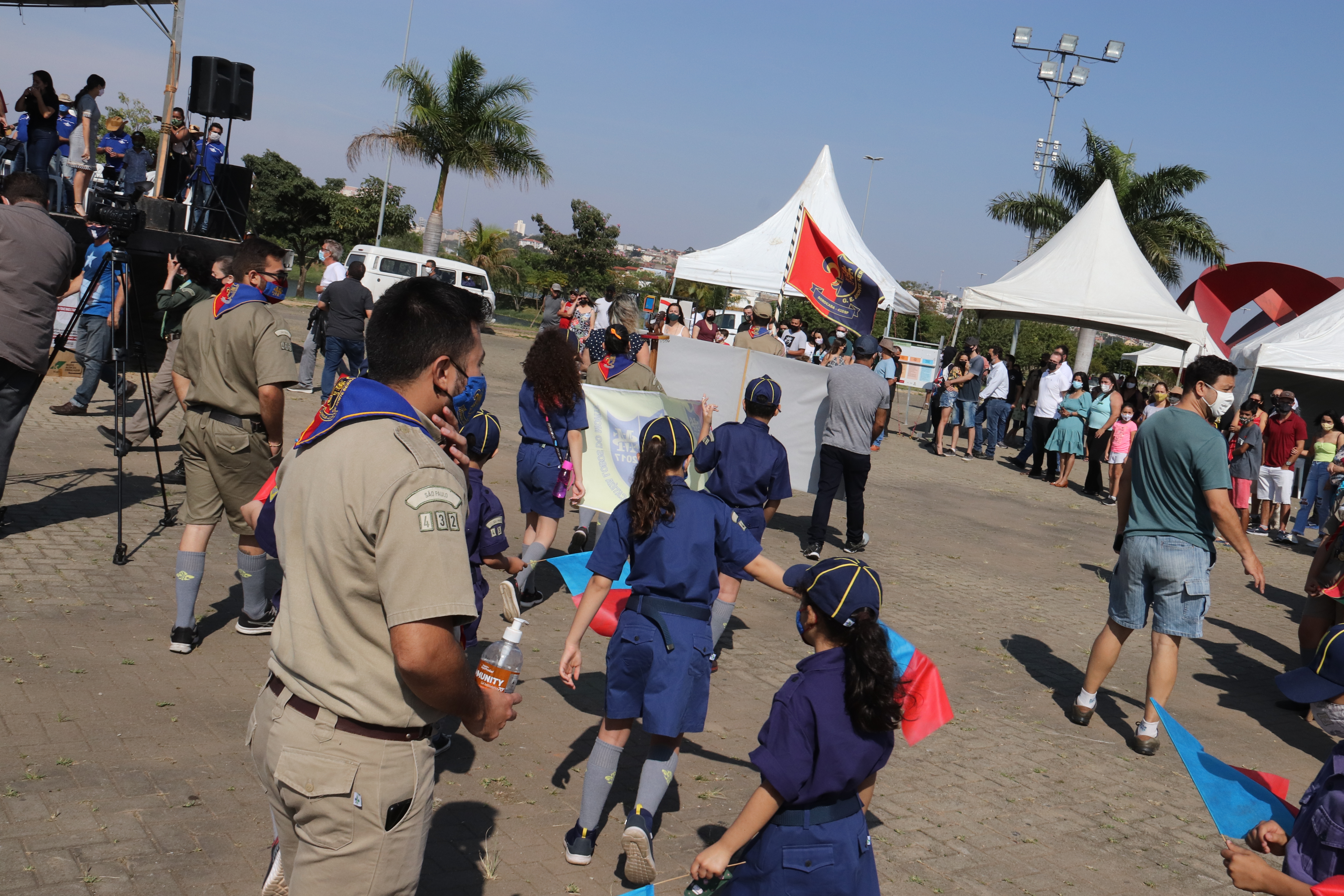As equipes do Grupo Escoteiro Monte Serrat também estiveram presentes e formaram tropa ao lado dos GCMs e de agentes de trânsito da Urbes. Após o hasteamento das bandeiras, ao som da Banda Regimental de Música do CPI-7 e da interpretação da cantora sorocabana Teresa Baddini, o público acompanhou o Hino Nacional, o da Independência e o de Sorocaba. E, ainda, ouviu atento a declamação de poema autoral em alusão ao Dia da Independência, pela jovem poetisa Ana Cristina Rodrigues.