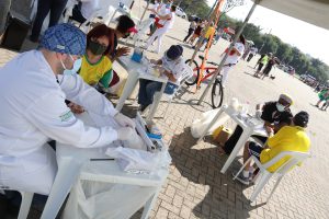 A Secretaria da Saúde (SES) orientou a população sobre prevenção e combate a arboviroses (dengue, chikungunya, zika e febre amarela) e realizou aferição de pressão e glicemia, além de testes rápidos para diagnosticar e encaminhar casos de HIV, Sífilis, Hepatite e Covid-19. “Venho sempre aqui no parque e estou adorando este evento de Dia da Independência. E aproveitei para fazer o teste de Covid, só para ficar com a cabeça mais tranquila”, mencionou a aposentada Regina Arali, de 77 anos, às 10h10 da manhã, sendo a 125ª pessoa atendida pela equipe da SES, de um total de 348 na manhã toda.