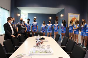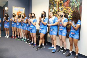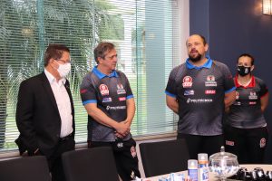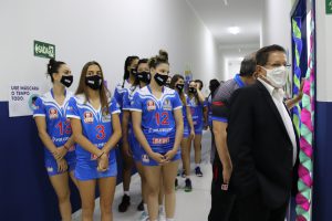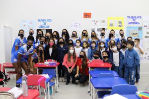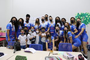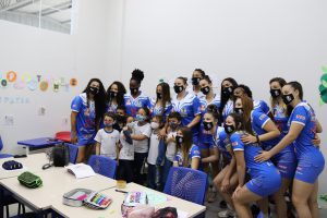 Já, a jogadora Bia, uma das 15 atletas presentes na visita, falou sobre a importância das mulheres no Esporte, citando o destaque de atletas femininas nas Olimpíadas de Tóquio, e agradeceu a todos pela parceria. “Agradeço de coração pelo apoio e o carinho de todos. Somos privilegiadas em fazer parte de um projeto tão legal e de ser exemplo para essa garotada. Honramos essa camisa com muito respeito, valor e, principalmente, amor”, declarou.
