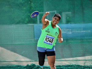 Atleta Hetieli Alvarenga quebrou o recorde brasileiro de Lançamento do Disco, da classe F64.
