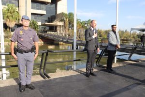 A abertura do Ato Cívico, na rampa do Paço Municipal, aconteceu com o hasteamento das bandeiras do Brasil, de São Paulo e de Sorocaba, com a presença de autoridades civis e militares, além da participação especial da Banda Regimental de Música do Comando de Policiamento do Interior (CPI-7) e da auxiliar de educação Elizete Garcia Cândido Pereira, da Escola Municipal “Dr. Achilles de Almeida”, que cantou o Hino Nacional Brasileiro e, na sequência, o Hino de Sorocaba. Houve a participação, ainda, do estudante Gabriel Diniz, do 6º ano da E.M. “Flávio de Souza Nogueira”, que fez a leitura de um texto em homenagem aos 370 anos de Sorocaba.
