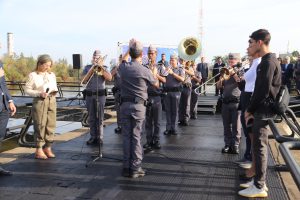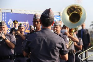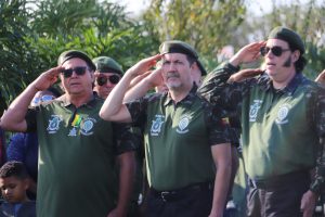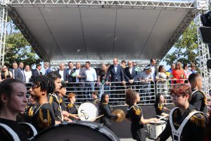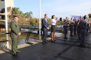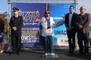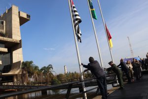 Antes, porém, o Ato Cívico, ocorrido na rampa de acesso ao prédio da Prefeitura, contou com o hasteamento das bandeiras e a apresentação da Banda Regimental de Música do Comando de Policiamento do Interior (CPI-7), além da participação das cantoras Allyne de Moura Silva, servidora pública municipal, e Teresa Baddini.