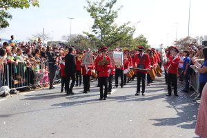Aliás, foi a Banda da PM que também abriu o Desfile Cívico, pouco depois das 9h, ao passo que coube à aluna da Escola Municipal “Leonor Pinto Thomaz”, Marina do Carmo Barros Seabra, ler um texto alusivo ao aniversário da cidade. Depois, houve o desfile de alunos de escolas públicas e particulares de Sorocaba, além de integrantes dos Clubes de Escoteiros da cidade, Base de Apoio Regional do Exército, Tiro de Guerra, Associação dos Reservistas do Tiro de Guerra, Preparatório Educacional Militar, Guarda Civil Municipal (GCM), Guarda Mirim de Sorocaba, Associação Crianças de Belém, Oficina de Integração Céu Azul, Casa do Menor, Grupamento de Bombeiro Civil e Rotary Club de Sorocaba.