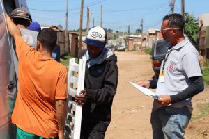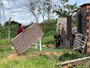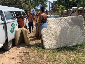 Nesta terça e quarta-feira (22 e 23), equipes da Secid estiveram, novamente, nos bairros Jacutinga, Jardim Marly e Itapemirim e entregaram mais móveis, colchões e alimentos às famílias previamente cadastradas.