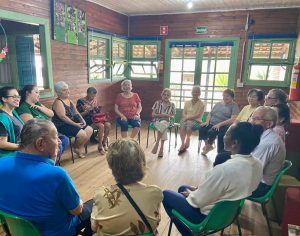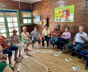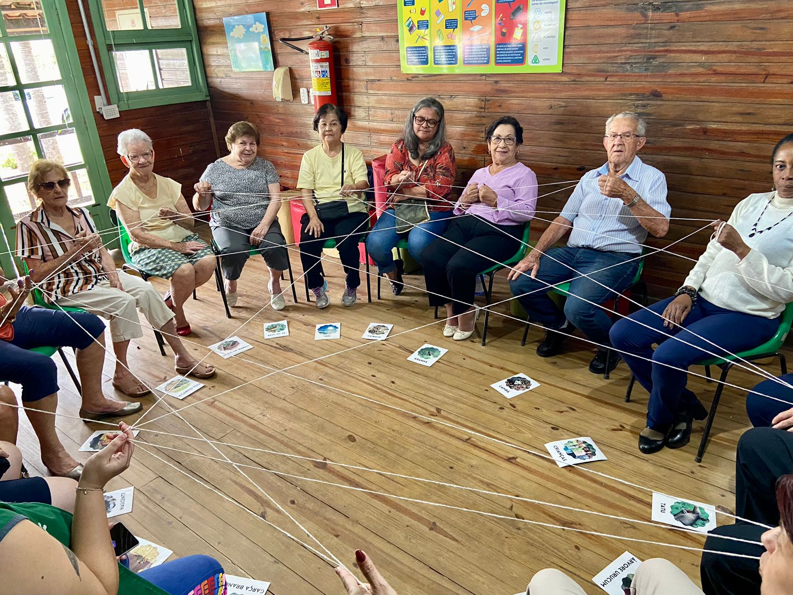Para isso, os idosos participaram da dinâmica “Teia da Vida”, onde puderam refletir sobre o papel do ser humano e o que ocorre no ecossistema, com a extinção de uma determinada espécie da fauna, por exemplo.