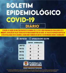 Sorocaba recebeu a notificação de um óbito confirmado da Covid-19, este ocorrido desde o dia 28 de março, mas informado pelo hospital à Vigilância Epidemiológica e computado apenas no dia de hoje (20 de dezembro).