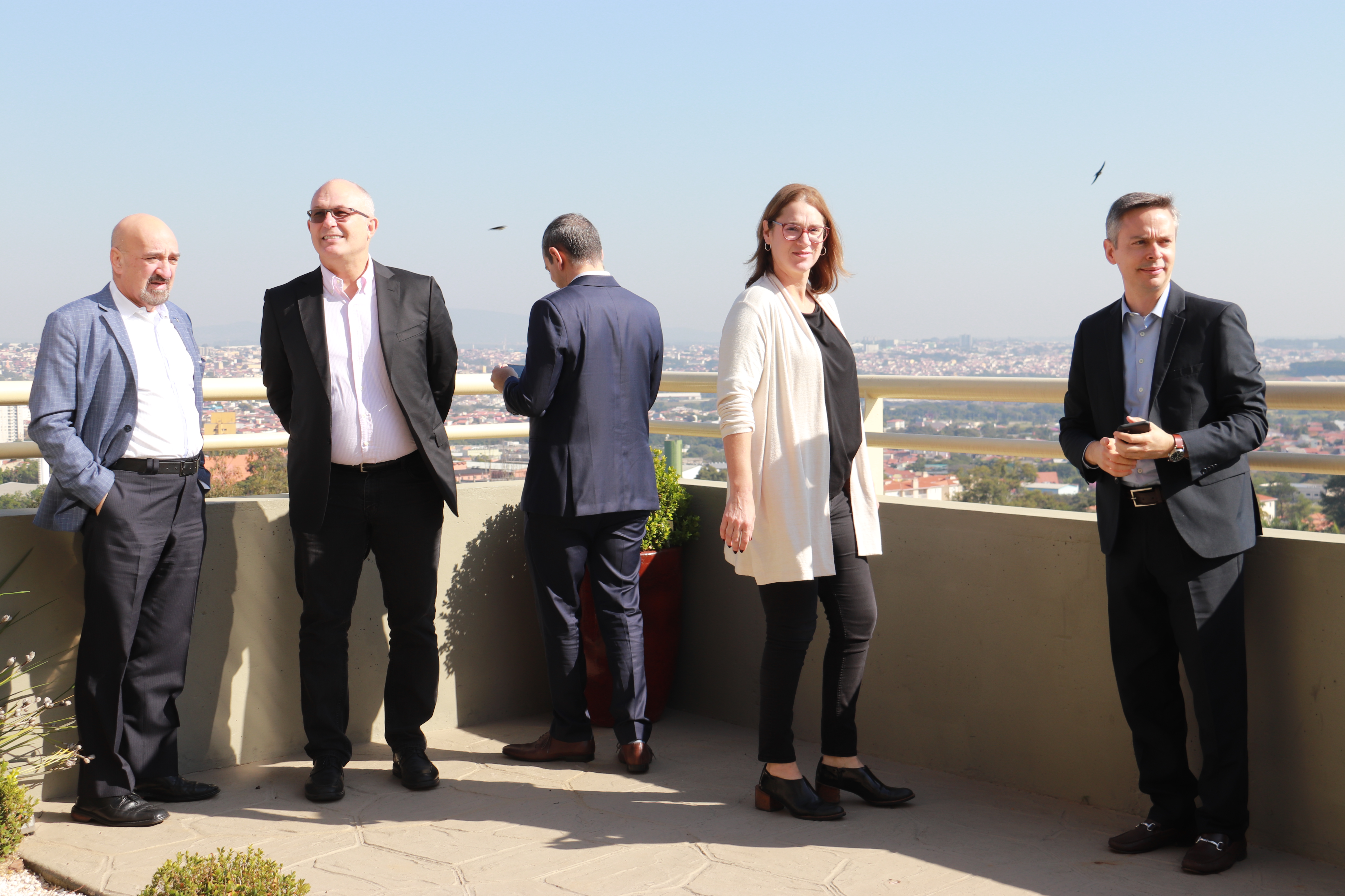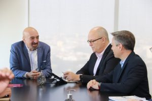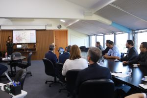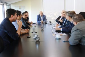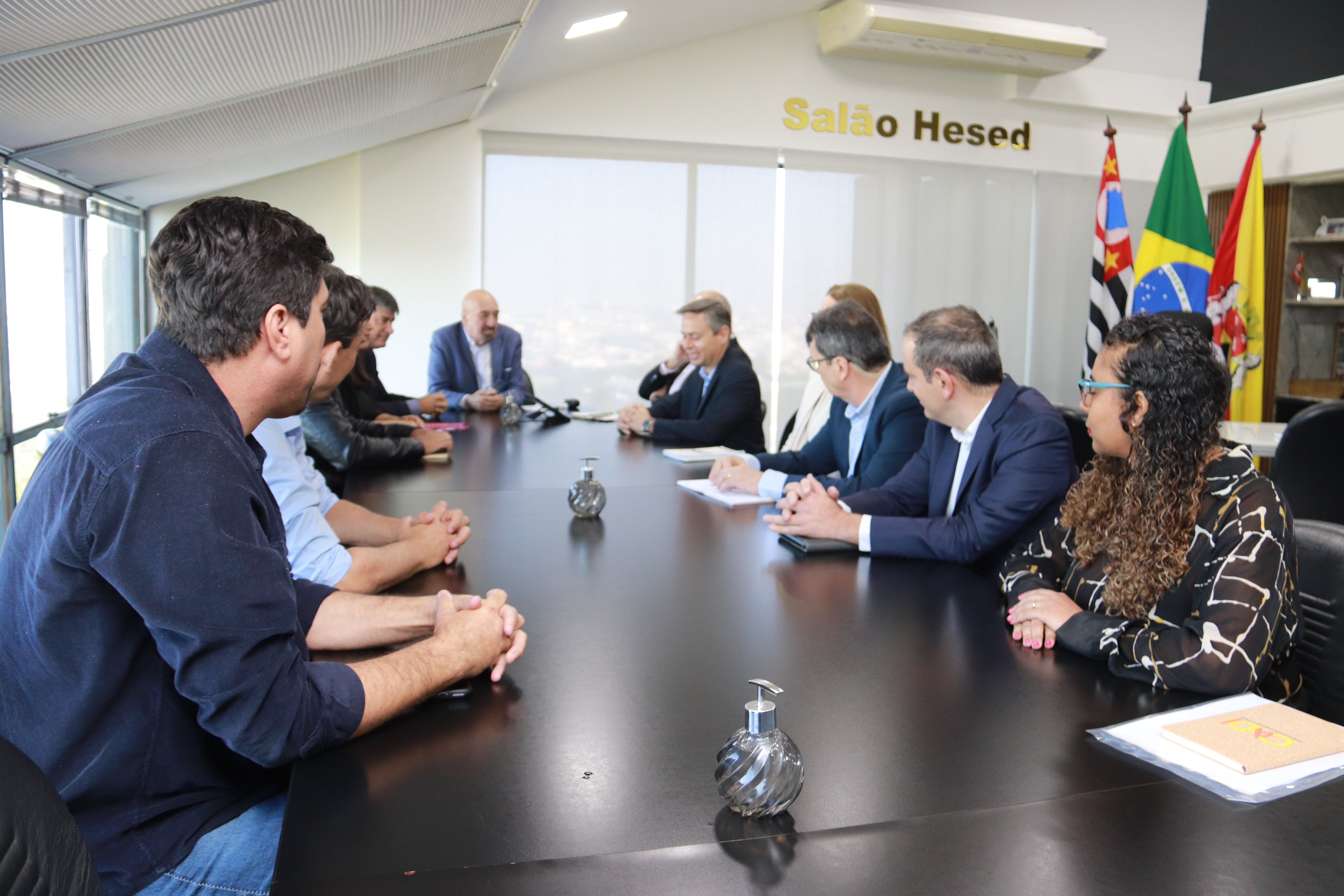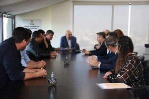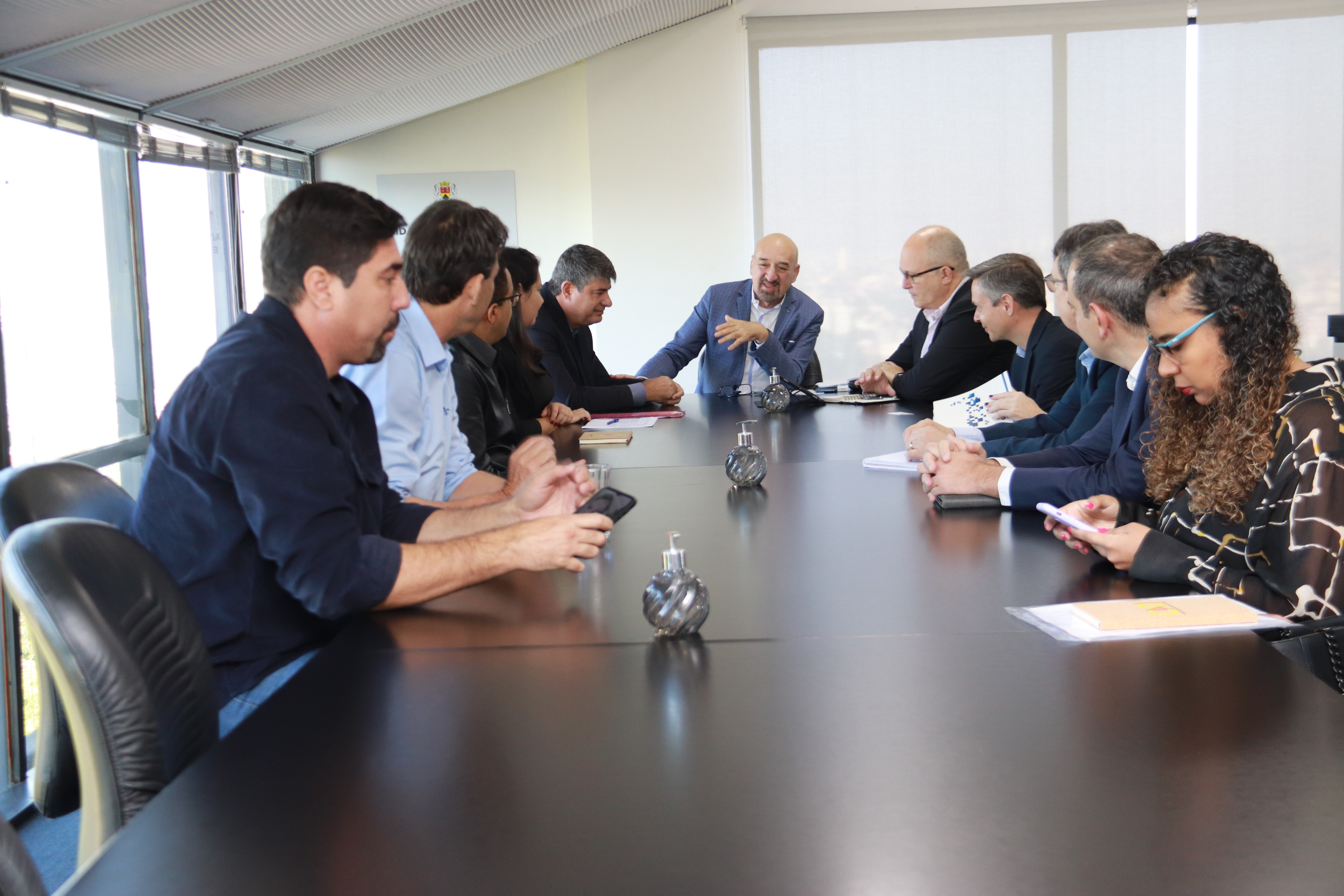 O prefeito em exercício, Fernando Martins da Costa Neto, recebeu a equipe do CAF, no Paço Municipal, formada por Antonio Silveira (gerente de Infraestrutura Física e Transformação Digital), Jaime Holguín (representante do CAF no Brasil), Claudia Flores (diretora de Projetos de Infraestrutura), Ramiro Pascual (executivo principal da Direção de Projetos de Infraestrutura) e Víctor Vaca Pereira (executivo principal da Direção de Projetos de Infraestrutura). Também participaram do encontro os secretários municipais Darwin de Almeida Rosa (Serviços Públicos e Obras – Serpo), Carlos Eduardo Paschoini (Mobilidade – Semob), Marcelo Regalado (Fazenda – Sefaz) e Fausto Bossolo (Administração (Sead), além de integrantes do CADI (Centro de Aceleração Desenvolvimento e Inovação), a coordenadora e responsável pela Unidade de Execução e Programa (UEP), Jessica Pedrosa, a coordenadora administrativa, Bárbara Braz, e diretor de área e gerente de obras, Rodrigo Faria. Tal setor da Prefeitura é responsável por gerenciar os contratos de obras com o CAF e outras instituições, ligado à Sead.