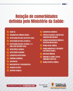 Já, as vacinas contra a gripe (Influenza) contemplam todas as pessoas com mais de seis meses de idade, com ou sem comorbidades. As vacinas Pfizer Baby, Pfizer Pediátrica e Pfizer Adulto igualmente são fornecidas aos respectivos públicos-alvo, em todas as UBSs.