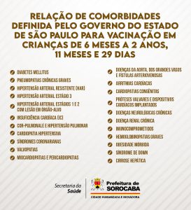 O Calendário Municipal de Vacinação segue atendendo a população com todas as vacinas disponíveis, nas 33 UBSs (Unidades Básicas de Saúde) da cidade de Sorocaba, das 8h às 16h, de segunda a sexta-feira.