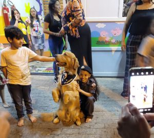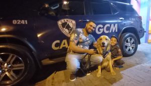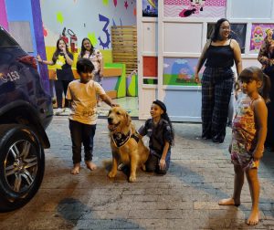 Canil da GCM faz surpresa em festa de aniversário infantil com cão terapeuta Buddy