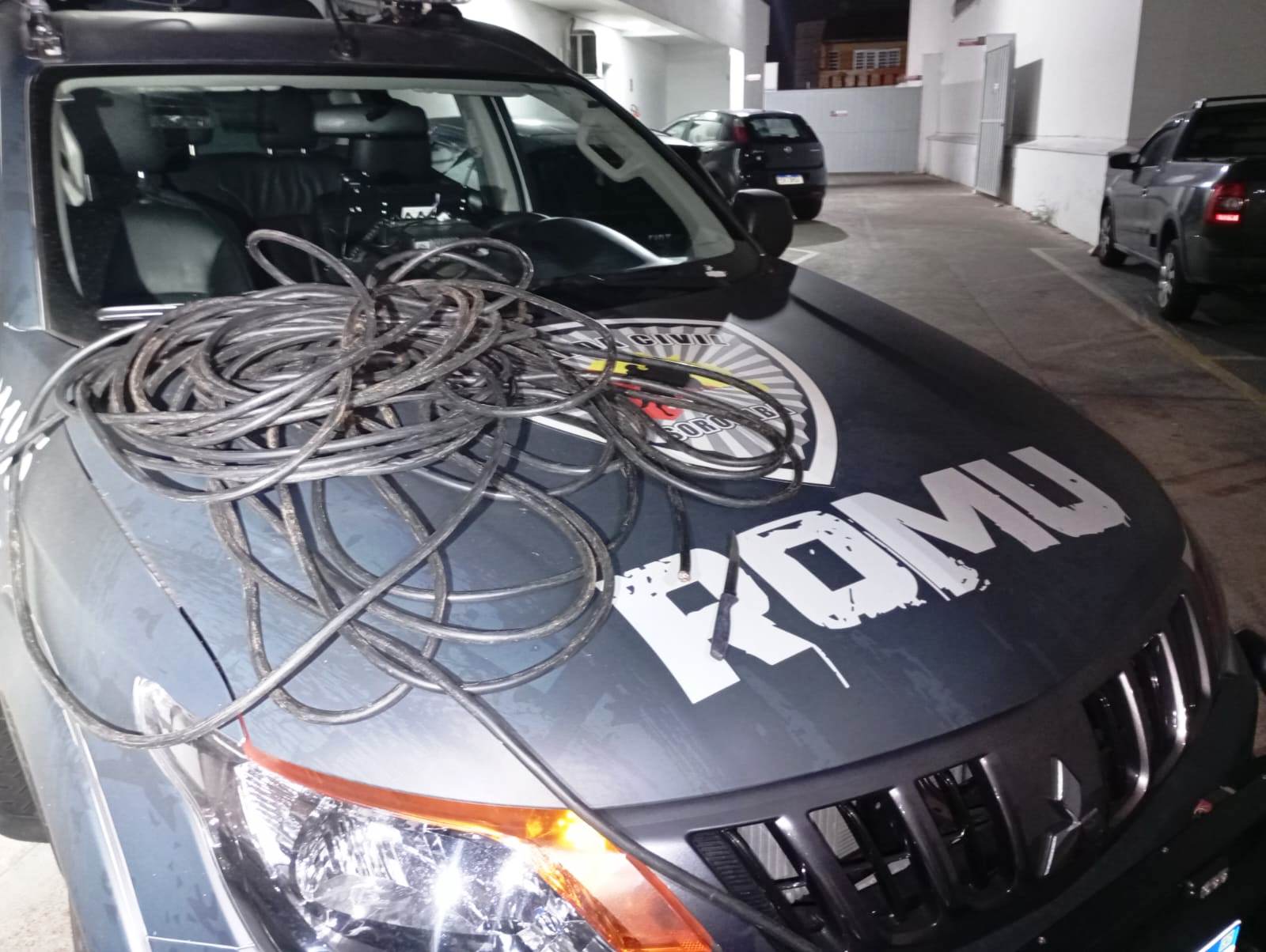 Nada de ilícito foi encontrado com eles, porém os GCMs encontraram uma faca e cerca de 50 metros de fiação cortada, que tinham sido abandonados durante a tentativa de fuga dos suspeitos. Ambos confessaram o furto aos guardas, cuja intenção era vender o material em um ferro-velho e obter dinheiro para comprar droga.