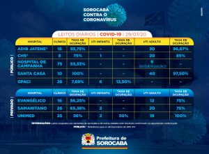 Sorocaba recebeu a notificação de mais 220 novos casos confirmados da Covid-19 nesta quarta-feira (29). Com isso, a cidade chegou ao total de 10.368 casos. Deste total, 116 estão internados (55 em UTI) e o total de pessoas em recuperação (isolamento domiciliar) é 568. Já os recuperados totalizam 9.441. Vale ressaltar que pessoas testadas com resultado IgG, entram na contagem de confirmados, mas não necessitam de isolamento, pois são considerados como curados.