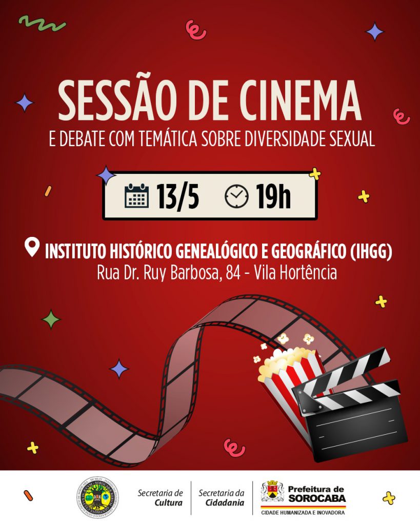 Com a iniciativa da Coordenadoria de Políticas Públicas para Diversidade Sexual, que integra a Secretaria da Cidadania (Secid), será apresentada, no Instituto Histórico Genealógico e Geográfico de Sorocaba (IHGGS), no próximo dia 13 de maio, um sábado, a partir das 19h, uma sessão de cinema com foco na temática da diversidade sexual. A ação tem o apoio da Secretaria de Cultura (Secult) e do IHGGS.