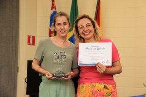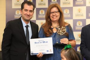 Outra servidora a participar do Jubileu de Prata foi a pediatra Simone Ribera Guerrero, que atua na UBS Barcelona há 23 anos, após passar pelas UBSs do Vitória Régia, Nova Esperança e Vila Barão. “Essa homenagem é muito importante, um reconhecimento. Trabalhar na rede pública tem inúmeros aspectos. São muitas histórias e muitos amigos, tudo muito gostoso”, disse, também ao lado de sua família.