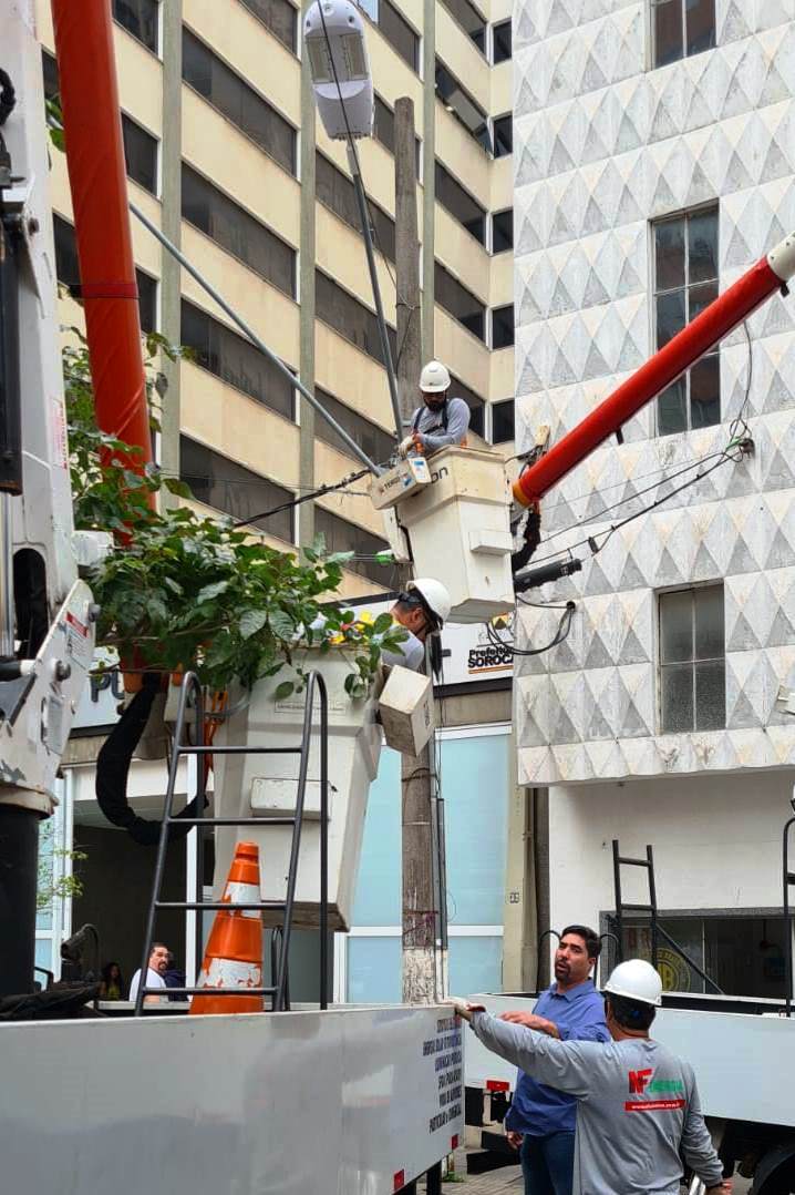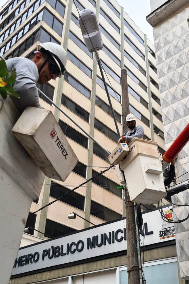 Iniciou-se, nesta sexta-feira (5), a instalação de conjunto de luminárias inteligentes, na região central da cidade, a partir da Praça Coronel Fernando Prestes. Sorocaba é a primeira cidade da região Sudeste do Brasil a receber, gratuitamente e em caráter de projeto-piloto, um sistema de iluminação pública equipado com tecnologia de 5ª geração (5G) de conectividade móvel, internet sem fio e câmeras de videomonitoramento.