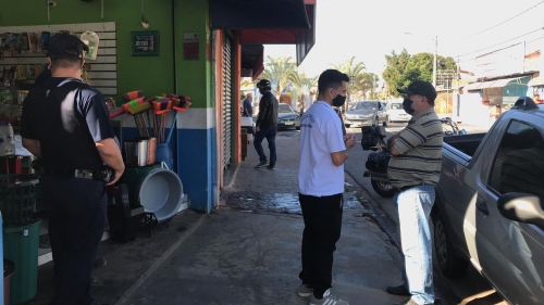 A equipe 2 foi ao Lopes de Oliveira e instruiu 25 estabelecimentos comerciais. Cerca de 50 munícipes receberam orientação para adoção de medidas de distanciamento social. Além disso, 12 máscaras faciais foram distribuídas. A equipe 3, que realizou o trabalho de orientação no Jardim Rodrigo, visitou 24 estabelecimentos e orientou a todos sobre a melhor forma de se evitar a disseminação do novo coronavírus.