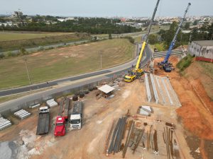 As obras de construção do complexo viário que vai interligar as avenidas Fernando Stecca e Independência, na Zona Leste da cidade, prosseguem em ritmo acelerado, sendo que nesta sexta-feira (6) foi concluído o trabalho de lançamento das vigas do viaduto. O empreendimento está a cargo da Prefeitura de Sorocaba, com trabalhos gerenciados pela equipe do Centro de Aceleração, Desenvolvimento e Inovação (CADI), ligado à Secretaria de Administração (Sead).