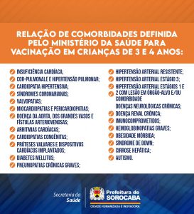 Os pais ou responsáveis de crianças com comorbidades ou deficiências devem apresentar igualmente um comprovante da condição de risco delas (exames, receitas, relatório médico, prescrição médica ou cadastro já existente na UBS).