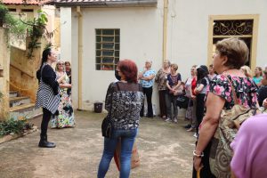 Confraternização de bordadeiras marca reabertura da cozinha caipira da Biblioteca Infantil de Sorocaba, após receber melhorias