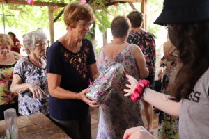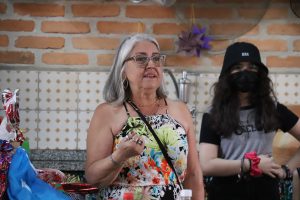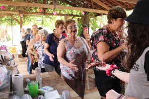 A coordenadora do grupo de bordado, Marinês Leme de Souza Pires de Almeida, juntamente, com sua amiga, Maria Regina Fonseca Damião, há seis anos reúnem um grupo, formado por cerca de 60 pessoas, majoritariamente mulheres, para praticar ou aprender diferentes tipos de bordados, na Biblioteca Infantil. Marinês conta, entusiasmada, que sabia da finalização das melhorias e da reabertura do espaço com a confraternização, mas guardou segredo de suas companheiras. “Eu fiquei quietinha, mas tinha certeza que ia ser muito especial. É uma grande alegria. O parapeito ficou lindo e combinou com a cozinha caipira”, afirma ela.