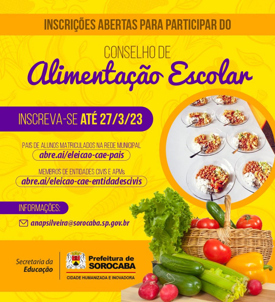O Conselho de Alimentação Escolar (CAE) é um conselho municipal composto por membros da sociedade civil, da Secretaria da Educação (Sedu) da Prefeitura de Sorocaba e por pais ou responsáveis de alunos, com o objetivo de realizar a orientação e fiscalização acerca da qualidade da alimentação escolar, assim como tem a tarefa de administrar os recursos disponibilizados pelo PNAE (Programa Nacional de Alimentação Escolar).