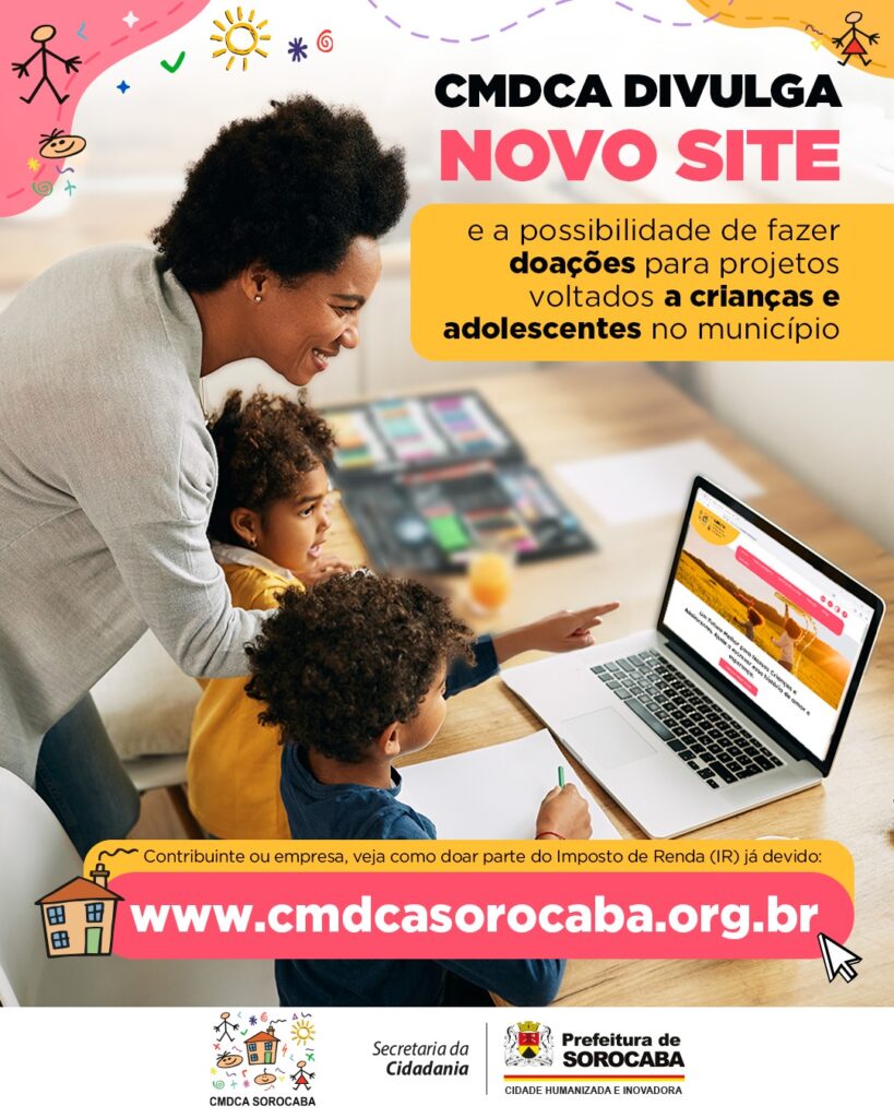 Nesse sentido, o CMDCA de Sorocaba acaba de lançar novo site (www.cmdcasorocaba.org.br/), em que é possível conhecer as atribuições e as ações do Conselho e, ainda, fazer a destinação de parte do Imposto de Renda (IR) já devido por pessoas físicas ou empresas, contribuindo para a realização de relevantes projetos de entidades assistenciais do município que sejam voltados a crianças e adolescentes.