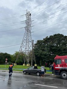 Corpo de Bombeiros, forças conjuntas e prefeito Rodrigo Manga impedem atentado de um homem contra a própria vida em torre de energia na Avenida Dom Aguirre na manhã deste domingo (8)