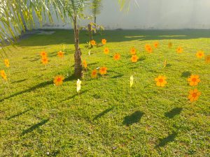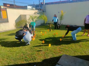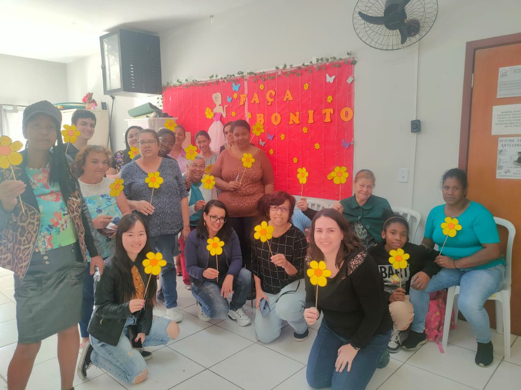 No final do encontro, as mulheres presentes plantaram flores de forma simbólica e colocaram nas pétalas os nomes de pessoas do seu convívio, nas quais sentiriam confiança para relatar situações de violência, dividindo isso tudo também com a equipe técnica da rede de apoio com a qual elas podem contar diante dessas ocorrências.
