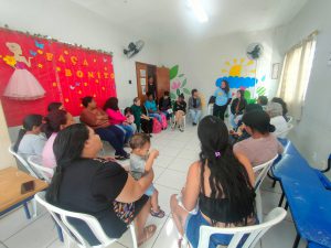 Durante o dia alusivo ao tema, as famílias, acompanhadas pelo PAIF (Serviço de Proteção e Atendimento Integral à Família), também participaram de uma roda de conversa referente aos assuntos abordados na campanha “Maio Laranja”.