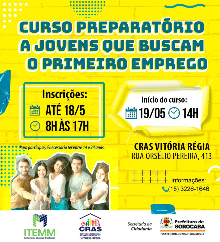 O CRAS (Centro de Referência em Assistência Social) Vitória Régia está com inscrições abertas para um curso preparatório voltado aos jovens que estão em busca do primeiro emprego.