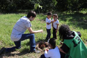 Crianças e adultos plantam 300 árvores em área de proteção ambiental para celebrar o Dia da Água e o Dia do Rio Sorocaba