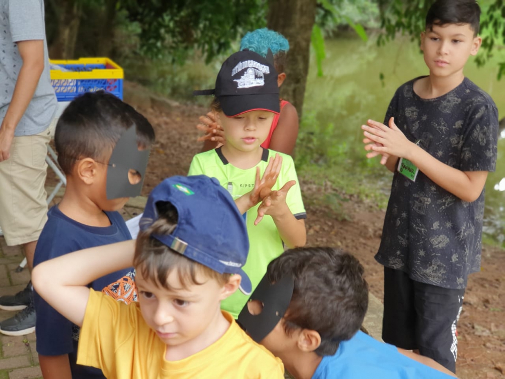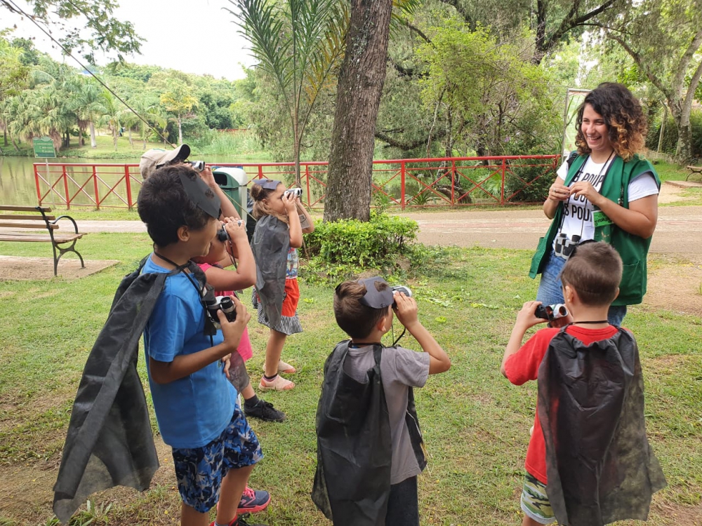 Nesse primeiro dia. as crianças também participaram de uma trilha no parque. “A atividade de hoje foi conhecer o Parque da Água Vermelha e descobrir quais os seres que moram na floresta, buscando vestígios de morcegos com binóculos”, conta a educadora da Sema, Viviane Rachid. Ao final da manhã, elas ganharam um “vale-muda”, quando junto com a família poderão plantar uma exemplar de amora no parque.